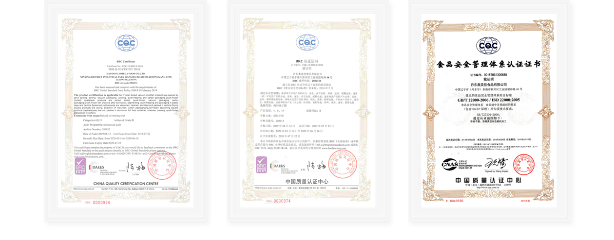 公司擁有現(xiàn)代化的水產(chǎn)品加工設(shè)備和嚴(yán)格的質(zhì)量管控體系,符合并通過美國FDA注冊、歐盟注冊和英國BRC認(rèn)證。公司旗下明星產(chǎn)品線:OMC速凍海鮮系列 、OMC即食海鮮系列、甲殼鮮生麻辣海鮮系列、甲殼鮮生海鮮飯系列。